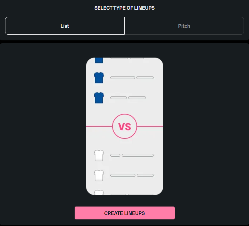 When creating lineups, keep in mind that you cannot create a lineup for only one team; lineups have to be created for both teams participating in a particular match.