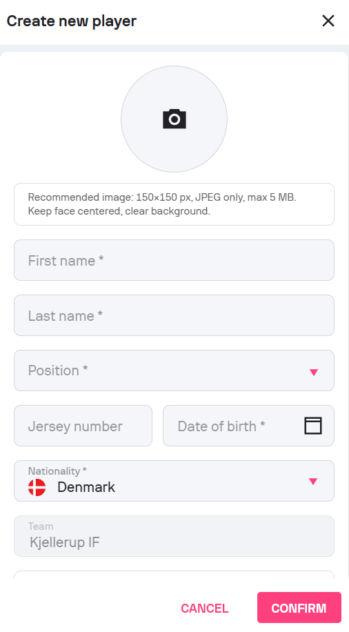 If you would like add a player who is not in our database, simply click on 'Create new player', and fill in the required information. Be careful to always input accurate data.
