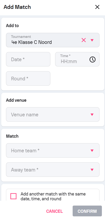 If the match has already been played, you can immediately enter the result by marking the match as finished and filling in the score.