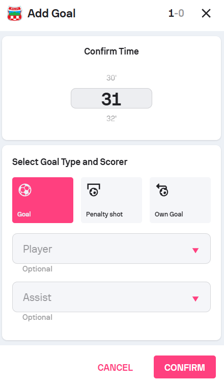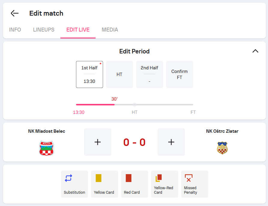 Keep in mind: Accurate live editing ensures correct statistics and standings. Make sure to always input correct information.