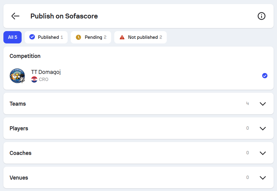 - Let you open the relevant competition, the Publish view, or a specific entity with one click
